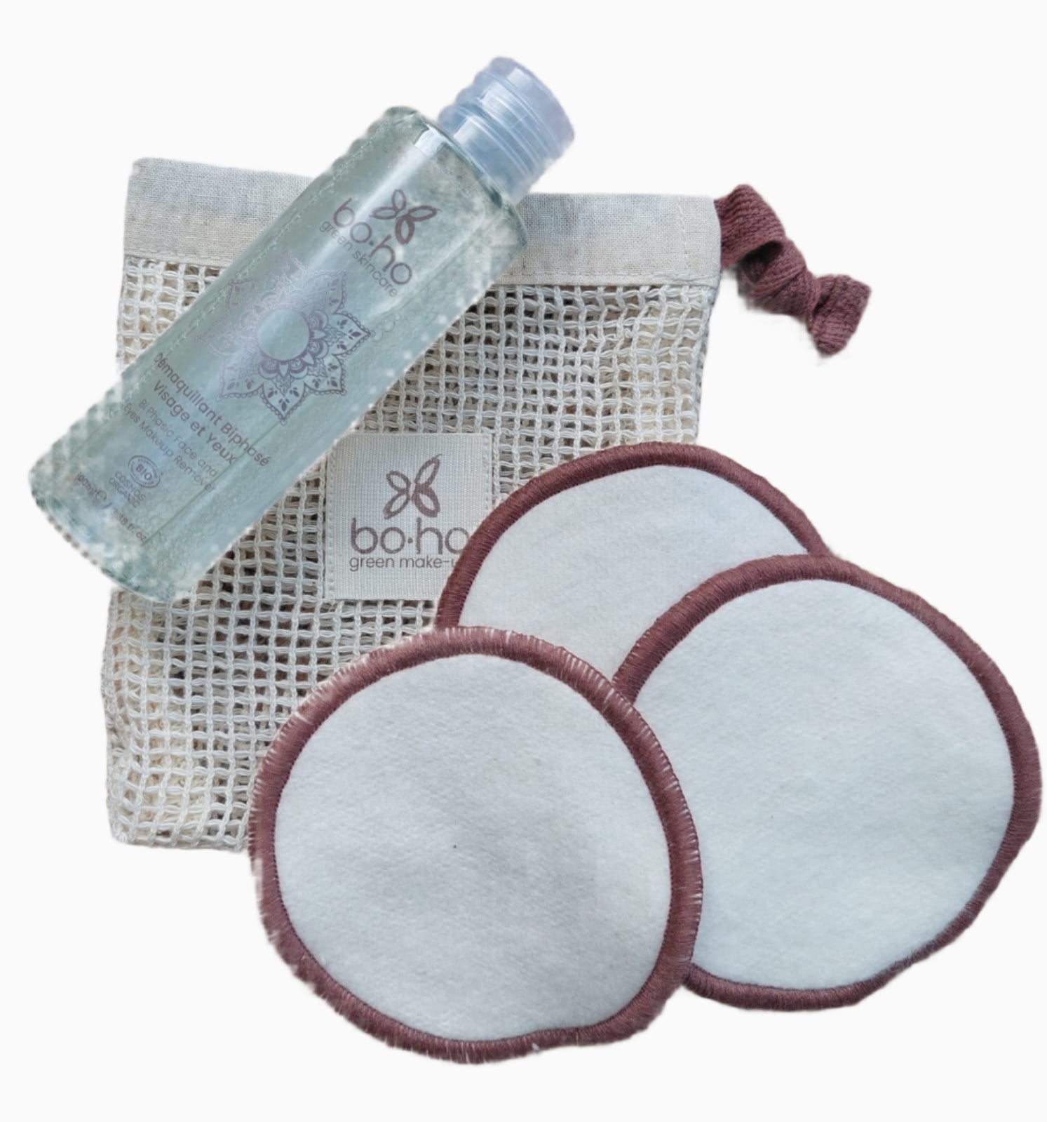 This Cleanser Kit features reusable cleansing pads designed for effective skincare with minimal environmental impact and the Bi-Phase Make Up remover.