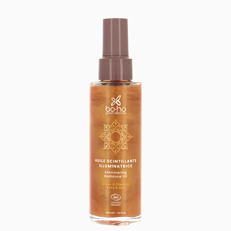 The shimmering radiance oil nourishes and adds a golden satin radiance to skin and hair. This non-sticky, non-greasy dry oil melts into your skin, revealing its addictive solar fragrance. Dermatologically tested